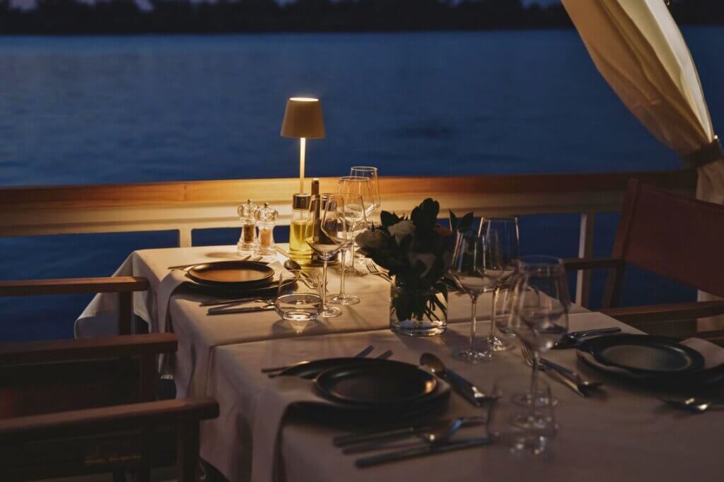 Die Tour startet am späten Nachmittag in Victoria Falls, Simbabwe, und dauert zwei bis drei Stunden. An Bord erwartet dich ein mehrgängiges Abendessen, begleitet von lokalen Weinen, Bier oder Softgetränken. Eine Vorausbuchung ist empfehlenswert, besonders zwischen Juni und Oktober. Je nach Anbieter ist der Transport vom Hotel inkludiert. Du benötigst jedoch eine Hotelübernachtung in Victoria Falls Town.