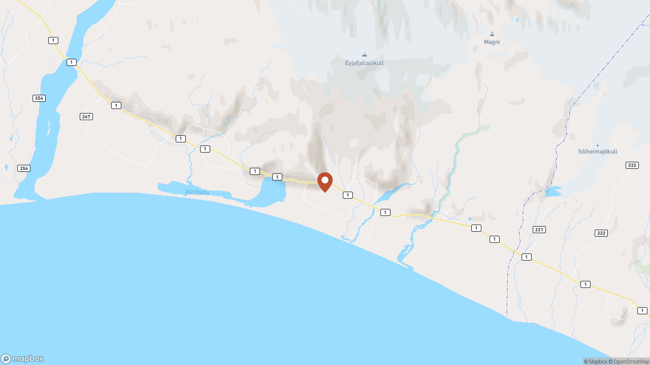 Genieße Kaffee und Gebäck mit Blick auf den Vulkan Eyjafjallajökull