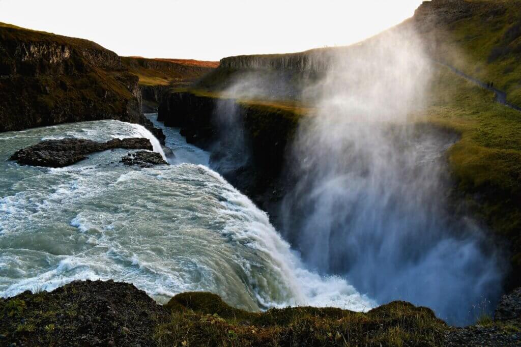 Staune über die Wucht des zweistufigen Gullfoss Wasserfalls