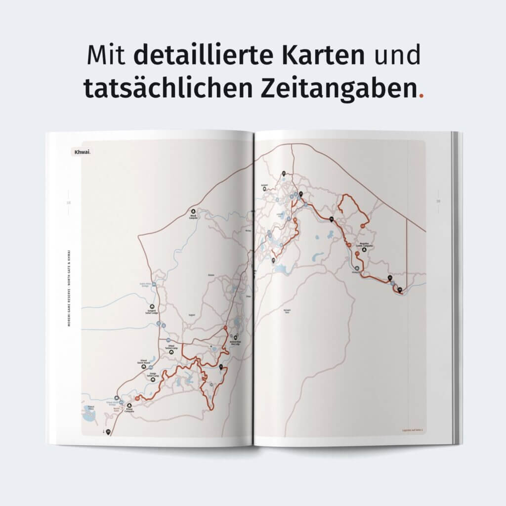 Detaillierte Karten mit tatsächlichen Distanzen und Fahrzeiten helfen dir, eine machbare Route zu planen. So fühlst du dich auch als Selbstfahrer immer gut vorbereitet – egal, in welche Region es dich verschlägt. - Ideal auch für Botswana-Erstreisende