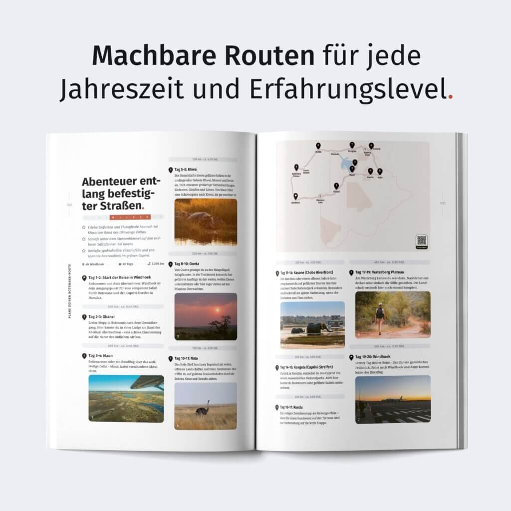 - Ideal auch für Botswana-Erstreisende: Finde Routen auch ohne Tiefsandfahrten und Antworten auf die häufigsten Fragen. So kannst du dir deinen Traum von Botswana erfüllen – auch ohne Offroad-Erfahrung.