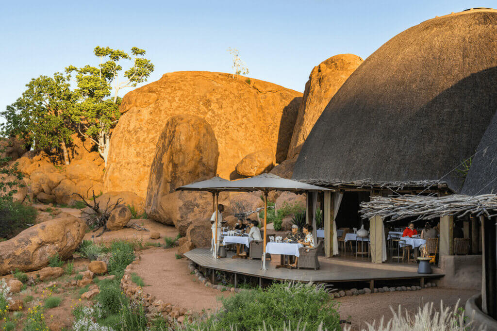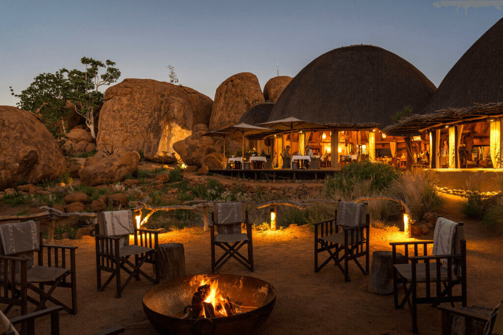 Die luxuriöse Lodge befindet sich im Damaraland und in der Nähe von Twyfelfontein. Das Camp wurde 2011/2012 renoviert und vergrößert.